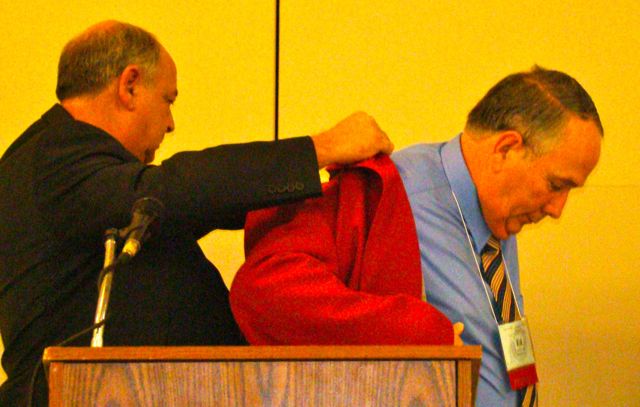 Tom Moore Presenting the Red Jacket to Past Section President Ed Larke |